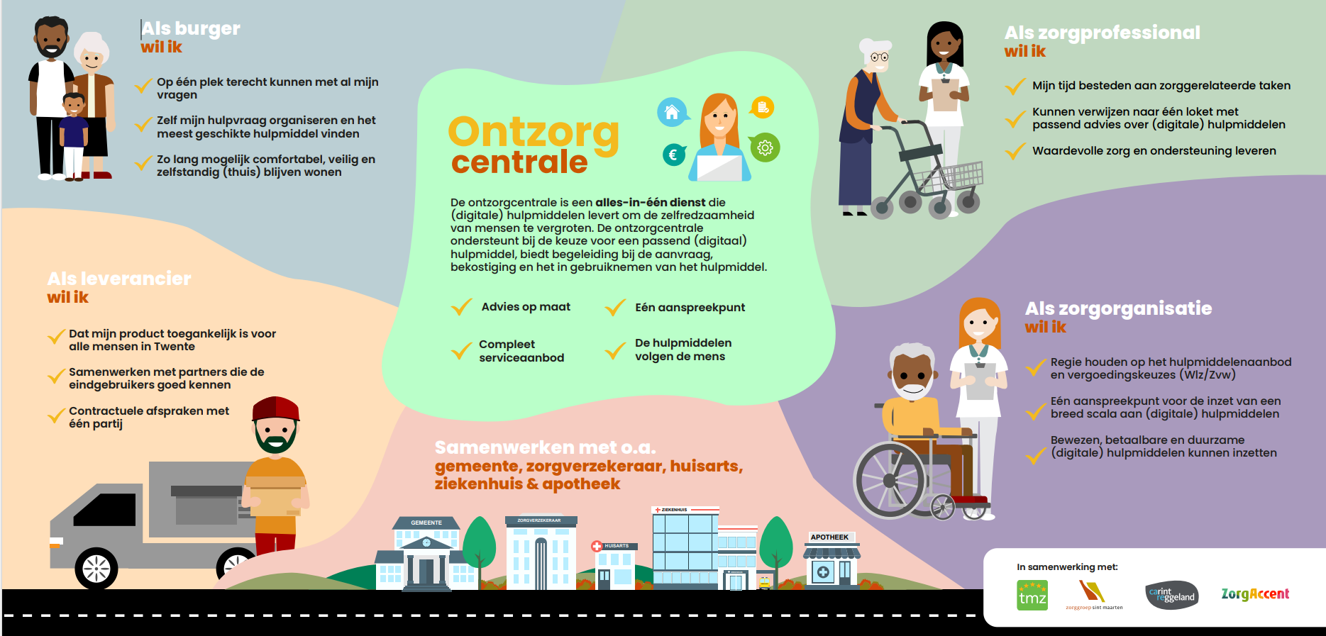 De Ontzorgcentrale is een-alles-in-één dienst waar iedereen met een hulpvraag op een eenvoudige manier ondersteunende hulpmiddelen kan aanschaffen. We adviseren in de keuze, zoeken vergoedingsmogelijkheden uit, ondersteunen bij de aanschaf en het in het gebruik nemen van het hulpmiddel.